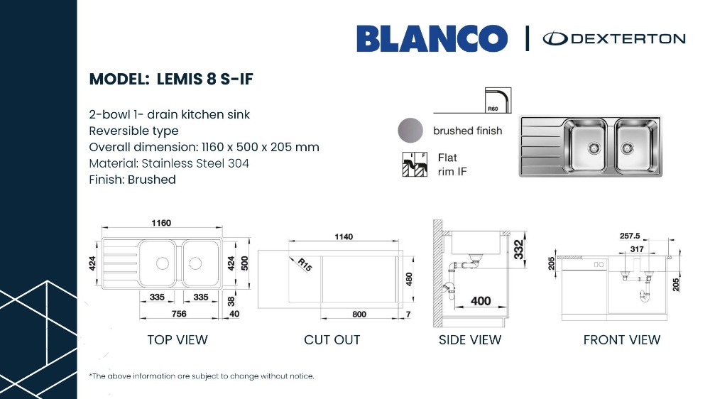 With over 90 years of experience in kitchen technology, design and manufacturing, BLANCO offers timeless stainless steel sinks that integrate beautifully into any kitchen. Made from premium quality 304 series steel with 18/10 chrome-nickel content, BLANCO stainless steel sinks are resistant to heat, rust, and calcium deposits and will keep their brilliance for decades.