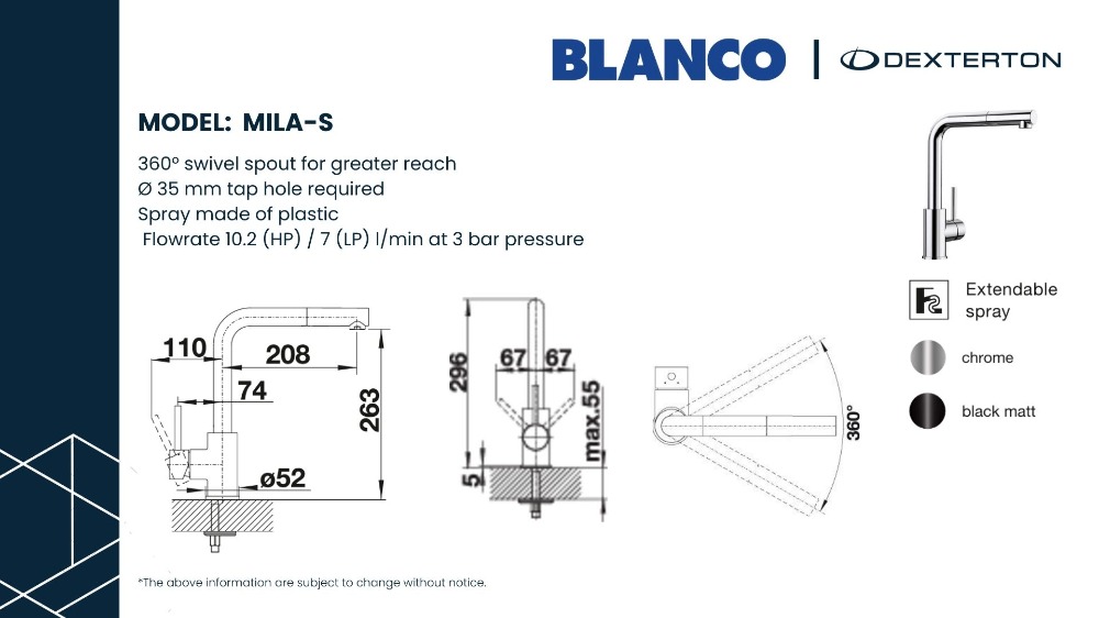 BLANCO MILA-S features a timelessly elegant design. A slender profile and clean shape define the straight-lined design of this mixer tap and give it a thoroughly modern look. The durable materials also emphasize the high quality of your kitchen fittings. In a chrome look, the classic design of the mixer tap ensures that it fits seamlessly into any style of kitchen. While the range might initially attract attention due to its appearance, it also has a plethora of practical features to offer.