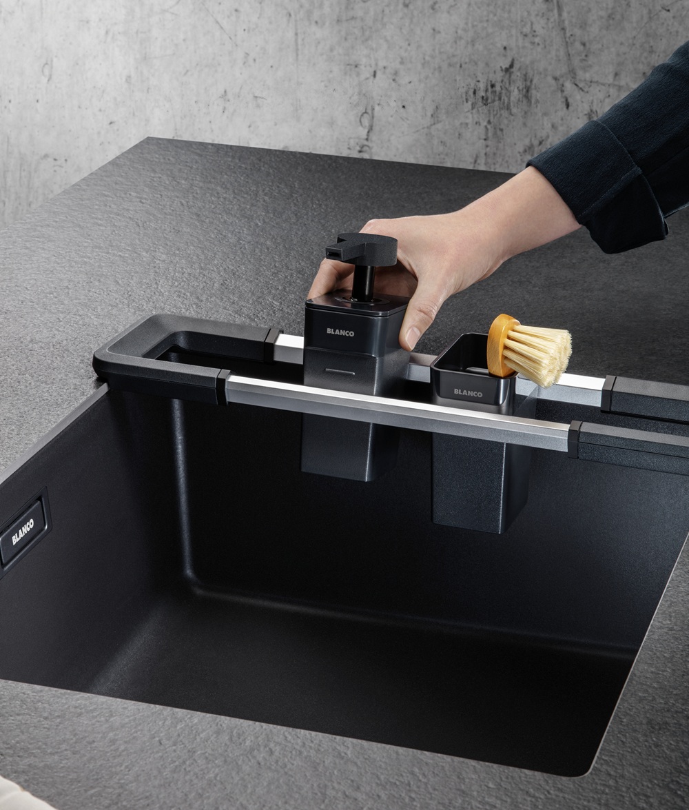 — Extendable sink rack can be used in BLANCO bowls with a width between 396 mm and 440 mm