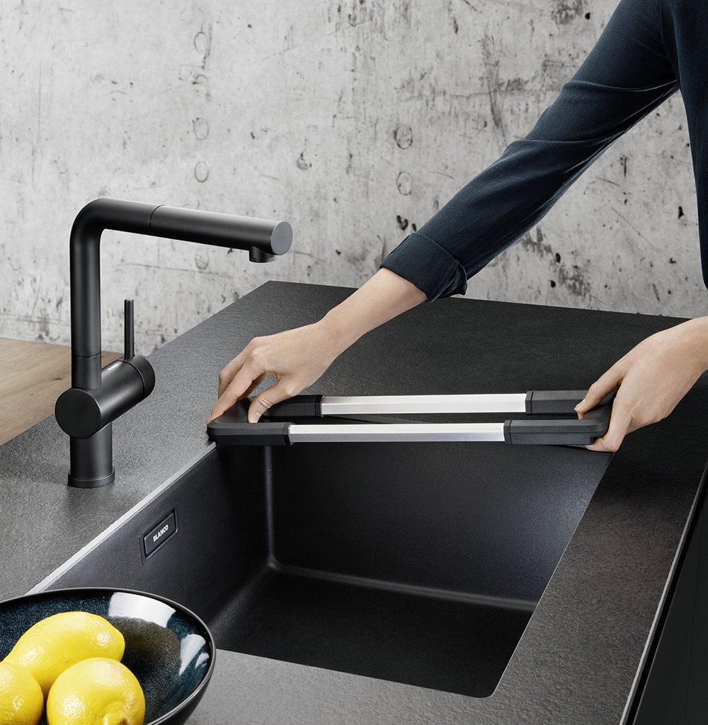 Depending on your sink installation, our cutting boards will fit on top of the bowl or seamlessly slide over the counter top, transforming your sink area into a multi-functional work space. BLANCO cutting boards are designed with a functional focus so you can streamline your workflow and focus on the task at hand.