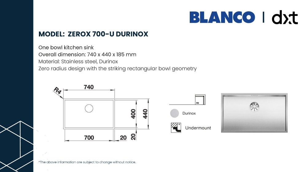 — Zero radius design with the striking rectangular bowl geometry