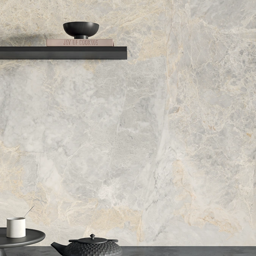 Versilia is a marble-look porcelain stoneware collection inspired by Carrara marble. It reproduces the natural patterns and tones of Tuscan marble in a durable, high-quality porcelain surface.