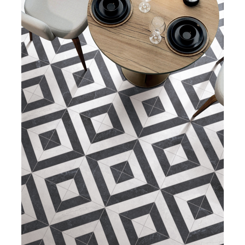 Porcelain Mosaic Tile, Moon + Coal Diamond, 30x30 cm