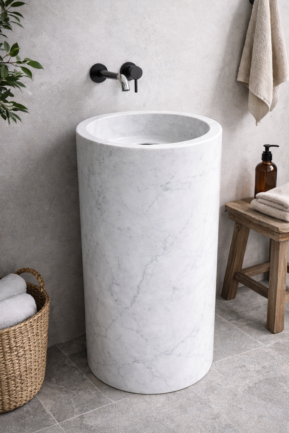 Bring timeless luxury to your bathroom with the Solea Carrara Marble Freestanding Basin. Expertly crafted from premium natural Carrara marble, this elegant pedestal basin features the iconic white base with delicate grey veining that makes Carrara stone highly sought after in modern and classic bathroom interiors.