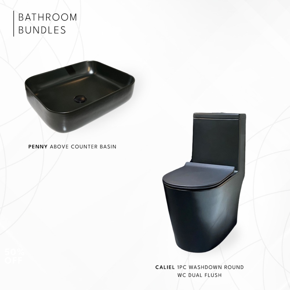 A bold, modern bathroom set that makes a dramatic style statement while delivering premium functionality.